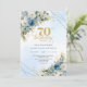 Celebrate a milestone in style with this elegant 70th birthday invitation featuring watercolor dusty blue and white flowers, soft eucalyptus greenery, and a shimmering gold frame. Designed in chic boho style with refined script lettering, this floral invitation is perfect for a classy 70th birthday party. Ideal for formal, garden, or luxury celebrations with a timeless, sophisticated touch.