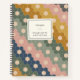 This stylish personalized recipe book features a boho geometric pattern of vintage hexagon shapes in a modern color palette of navy blue, forest green, blush pink, and mustard yellow. Great gift idea.