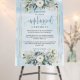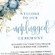 The most trendy wedding color scheme is dusty blue, and this elegant boho unplugged ceremony sign captures that serene and romantic tone perfectly. Designed in soft watercolor hues, it features dusty blue and ivory flowers with lush eucalyptus greenery — a timeless combination that brings calm sophistication to your wedding decor. Perfect for modern, rustic, or minimalist celebrations, this unplugged sign gently reminds guests to be fully present, putting away phones and cameras to enjoy the heartfelt moments of your ceremony. The mix of dusty blue, ivory, and sage tones blends beautifully with any venue — from garden weddings to chic indoor settings. Customize with your names, date, or personalized message to create a stylish and meaningful sign that welcomes guests with grace and modern charm.