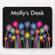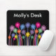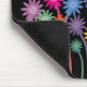 Black mousepad with stylish colorful symmetrical cartoon flowers illustration. The background color and text can be changed (or removed) by clicking on the “Customize it” button – there´s lots of colors and fonts to choose from. If you need any assistance in customizing your product please contact me through my store and I will be more than happy to help.