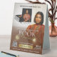 Announce your upcoming book launch with this elegant and captivating table tent sign design. Featuring rich brown and gold tones, a luxurious wall-textured background, a soft gradient overlay accented with delicate gold lines and graceful script, this template delivers a modern, sophisticated look. The refined typography adds a touch of class, while your book cover and photo remain the focal point—ensuring they capture attention instantly.