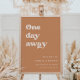 One Day Away: rehearsal dinner welcome sign. A retro chic theme: adopt this vintage and stylish typographic design for your wedding stationery, with a brown sugar color theme. Easy to mix and match with our similar stationery available in burnt orange, terracotta & peach pink. Fully customizable text colors and backgrounds.