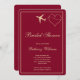 A stylish look for a modern bridal shower. With a heart and plane at the top, it's an excellent choice for the bride who will be having a destination wedding or loves to travel. In burgundy and gold, it has a dramatic touch. Add the name of the bride, bridal shower location, date and time. At the bottom you can add relevant information for a response.