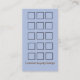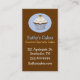 Stylish bakery business card done in brown and blue. Cute graphics of a chocolate cupcake decorates a blue round disc, on the front, and square blocks, on the backside for customer loyalty stamps. Personalize all the text, front and back, to suit your business needs.