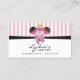 © 2011 Socialite Designs. Our whimsical cake pops bakery business card design has three cake pops tied with a bow, a black ribbon and striped background. A perfect business card for a bakery business or event catering business. Personalize this cake pops bakery business card with your information. Need HELP with customizing? Please do not hesitate to contact me with your requirements.