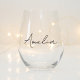 Elegant and chic personalized stemless wine glass featuring your name monogrammed in a minimal stylish script. Perfect gift for yourself or your mom, sister best friend, aunt, grandmother, bridesmaids, maid of honor, etc.