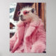 Stylish Capybara in Pink Fur Coat and Sunglasses Poster
