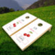 Elevate your outdoor entertainment with our stylish cornhole set, adorned with an elegant red and white design that exudes sophistication. At the heart of the design, two pretty red cherries with a lush green leaf stand out against a crisp white background, adding a touch of charm to your game.