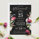 This elegant Stylish Chic Black Lavender Wild Flower Retirement Invitation features a bohemian floral design with wildflowers on a chic black background. The modern script in pastel pink and white combines with classical typography to create a sophisticated feel. The design showcases a retro vintage illustration of magenta red tulips, green leaves, and lavender blue and white wildflowers, evoking the essence of a beautiful garden in full bloom. The reverse side is solid black, and all text is customizable. Available in both print and digital formats, you can personalize your invitation to perfection. Explore color variations and the full collection. Order now!