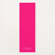 Personalized hot pink custom modern script name text monogram solid plain color stylish elegant chic hot pink fuchsia and white text yoga mat. Customize, personalize it with name, quote, phrase, or text.