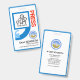 Overleaf, a similar blue border design theme is used with the heartbeat logo at the top. Below the logo is the caption remarks "If lost return to", change the caption to suit your needs. Your name and employee number are next, followed by the contact details and a slogan option to publicize your services.