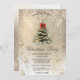 Stylish Christmas Pine Tree Snowflakes Gold Invitation