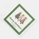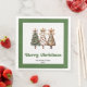 Modern Christmas dinner napkins featuring three minimalist watercolor Christmas trees in earthy green and gold with playful leopard pattern accents and hand-drawn lettering. A stylish choice for festive tables, these napkins are personalized with your custom name, adding a unique and elegant touch to your holiday dinner or Christmas party décor. 🎄✨