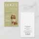 The front side features an elegant Cocker Spaniel illustrated in a stylish coat, cap, and monocle, set against a soft sage green (salvia) background. The design is styled like the cover of a luxury dog magazine, giving your brand a fashionable and memorable presence. All headline-style text on the front is fully customizable, allowing you to add your name, business name, and pet service type, such as dog grooming, pet sitting, or dog walking. The magazine title and cover text can also be edited to match your brand identity.