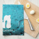 Stylish Cool Blue water drops Monogram Kitchen Towel