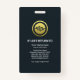Colorful stylish blue shade waves are accentuated by an underlying global imprint at the top layer of the badge. Here lies an optional faux gold global city silhouette logo you can use. This is followed by your prestigious name, job title and a photo template to upload photos up to a size of 1,000 x 1,000 pix. Near to the base of the badge is a remarks caption "PRESS". You can change the caption to suit your needs. Just below this is the organization name.