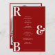 Stylish Crimson Red Monogram QR Code Wedding Invitation