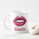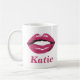 Add a pop of fun and personality to your morning routine with this custom name mug featuring a stylish pink lips illustration and your personalized name underneath. Whether it's for a friend, family member, or a special treat for yourself, this unique coffee cup makes a chic statement. Ideal for birthdays, anniversaries, or just because, this durable mug is microwave-safe and dishwasher-safe, making it both fashionable and practical. Customize it with any name to create a one-of-a-kind gift that’s perfect for her!