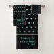 A set of stylish, elegant customizable black bathroom towels, designed with teal polka dots against a rich black background. There is a CUSTOMIZABLE Christian Scripture which says 'Create in me a clean heart, O Lord', which is based on Psalm 51. The text (right justified) can be replaced with your motto, name(s), monogram, establishment, etc. Matching accessories available.