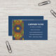 A stylish business card with an abstract pattern of in shades of blue, orange and yellows, with white lettering on a dark blue background. Ready for you to customize with your own details.