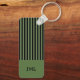 Stylish personalized keychain features dark green and black stripes. Customize with name or monogram at bottom