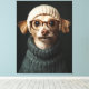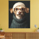 A cute dog wearing glasses, a knit beanie, and a turtleneck sweater, exuding a scholarly and fashionable vibe.