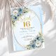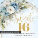 Stylish Dusty Blue Floral Gold Sweet 16th Invite