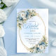 Stylish Dusty Blue Flowers Gold Frame Bridal Showe Invitation