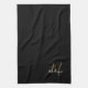 Stylish Elegant Black Gold Script Name Monogram Kitchen Towel