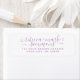 Create your own Wedding Invitations Return Address labels with this Stylish Elegant Chic Script Return Address template. The Return Address simple label in cute lavender liliac purple typo features couple names and surname in handwritten calligraphy modern font, and your own return address in classic and sophisticated serif font. This clean and minimalist return address label design is perfect for rspv, wedding invitations, bridal shower, save the date and all your special occasions.