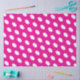 This fun stylish design features tiled white diagonal ovals against hot pink background.
