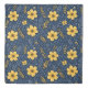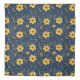 This beautifully arranged duvet cover showcases a classic Mediterranean botanical flower design, featuring a vibrant pattern of yellow, orange, and dark blue flowers and leaves. The design is ornate, stylish, and eclectic, making it appealing to artistic crafters and enthusiasts of vintage retro styles. It is available on a variety of modern decor products such as fleece blankets, lamps, and bedding.