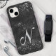 Stylish faux Crystal rhinestone letter N black iPhone 15 Case. Show off your personal style, look fashionable, trendy and feel stylish with a unique design on a mobile device accessory or customize it over another product of your choice.