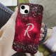Stylish faux Crystal rhinestone letter R red black iPhone 15 Case. Show off your personal style, look fashionable, trendy and feel stylish with a unique design on a mobile device accessory or customize it over another product of your choice.