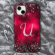 Stylish faux Crystal rhinestone letter U red black Case-Mate iPhone Case