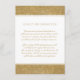 Customize this beautiful stylish, chic, and classy Wedding Insert Card designed with faux gold faux glitter. Please note that the gold glitter is a color print and is not an actual gold or glitter. Change all the information with your own.Below are links to a matching Wedding Invitation, RSVP, Program Cards, Bridal Shower Invitation, Rehearsal Dinner Invitation and Thank You Favor Stickers.