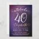 Celebrate in style with this chic 40th birthday invitation! Featuring an elegant royal purple gradient and large modern white script paitred with modern simple typography for details, it boasts a stylish, feminine design. The back mirrors the same sophisticated dark purple gradient. Ideal for a woman with flair and attitude, this invitation sets the perfect tone for a memorable celebration. Available for digital download and in various color options, order yours today to make the big day truly special!