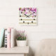 Stylish Floral Gold Striped Square Wall Clock