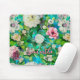 Stylish floral pink flowers blue monogram pattern mouse pad