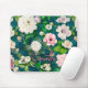 Stylish floral pink flowers green monogram pattern mouse pad
