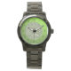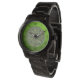 A shiny kind of metallic green circle embraces the center image, and allows the digits to stand out better. This version comes with roman digits.