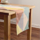 This stylish table runner features a classic geometric shapes pattern in a beautiful autumn earth tones color palette of gray, blush, yellow, and sage green.