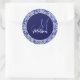 Stylish girly blue grey initial monogrammed classic round sticker