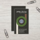 A simple design using a circle which holds your faux gold globe logo. This is connected by import and export lines at the top and bottom of the circle. At the top brown import line lies your prestigious name and job title. The export line at the base of the card has your contact details.