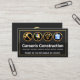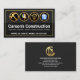 A grey and black layer is encapsulated by a faux gold rectangular border. At the top are four creative gold icons that can represent some of the work you might offer e.g. the gold hammer is for carpentry and renovation works, the roller brush for home painting, the home bulb logo for electrical works and lastly the blue faucet home icon is for plumbing. Towards the black layer is the business name, a list of services offered and the contact details near the base. You can change the list of services to suit your own needs.