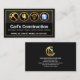 A grey and black layered design is encapsulated by a faux gold rectangular border. Over at the top are four creative gold icons that can represent some of the work you might offer e.g. the gold hammer is for carpentry and renovation works, the roller brush for home painting, the home bulb logo for electrical works and lastly the blue faucet home for plumbing. Below all this is the business name, a list of services offered and the contact details. You can change the list of services to suit your own needs.