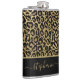 This stylish flask features glitter leopard print on gold background with black border and personalized with your name.