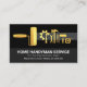 A black and grey layered cover is accentuated by a creative faux gold handyman tools design. The gold roller brush leaves behind a grey paint stripe that houses a set of handyman tools. Just below this is the business name, a slogan option to publicize your services and the contact details. All the Lettering here are in faux gold.