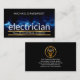 Cover features a blue electrical lightning pulse streaking across the face of the card. Riding the electrical wave is your business name "electrician" which you can change. Contact details can be found inside a gold line placard with your prestigious name at the top.