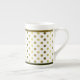 Chic white china mug, with a golden polka dot pattern and a golden brown border. Customize to add any text you want. Beautiful cup for your morning coffee or tea. Matching housewares available.